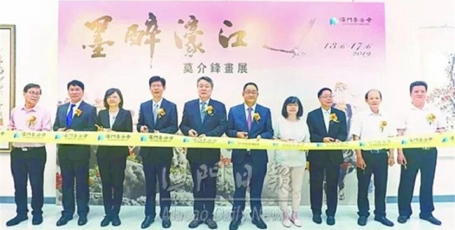 图示:2019年6月13日下午由澳门基金会主办的“墨醉濠江——莫介锋画展”在澳门教科文中心展览厅揭幕。